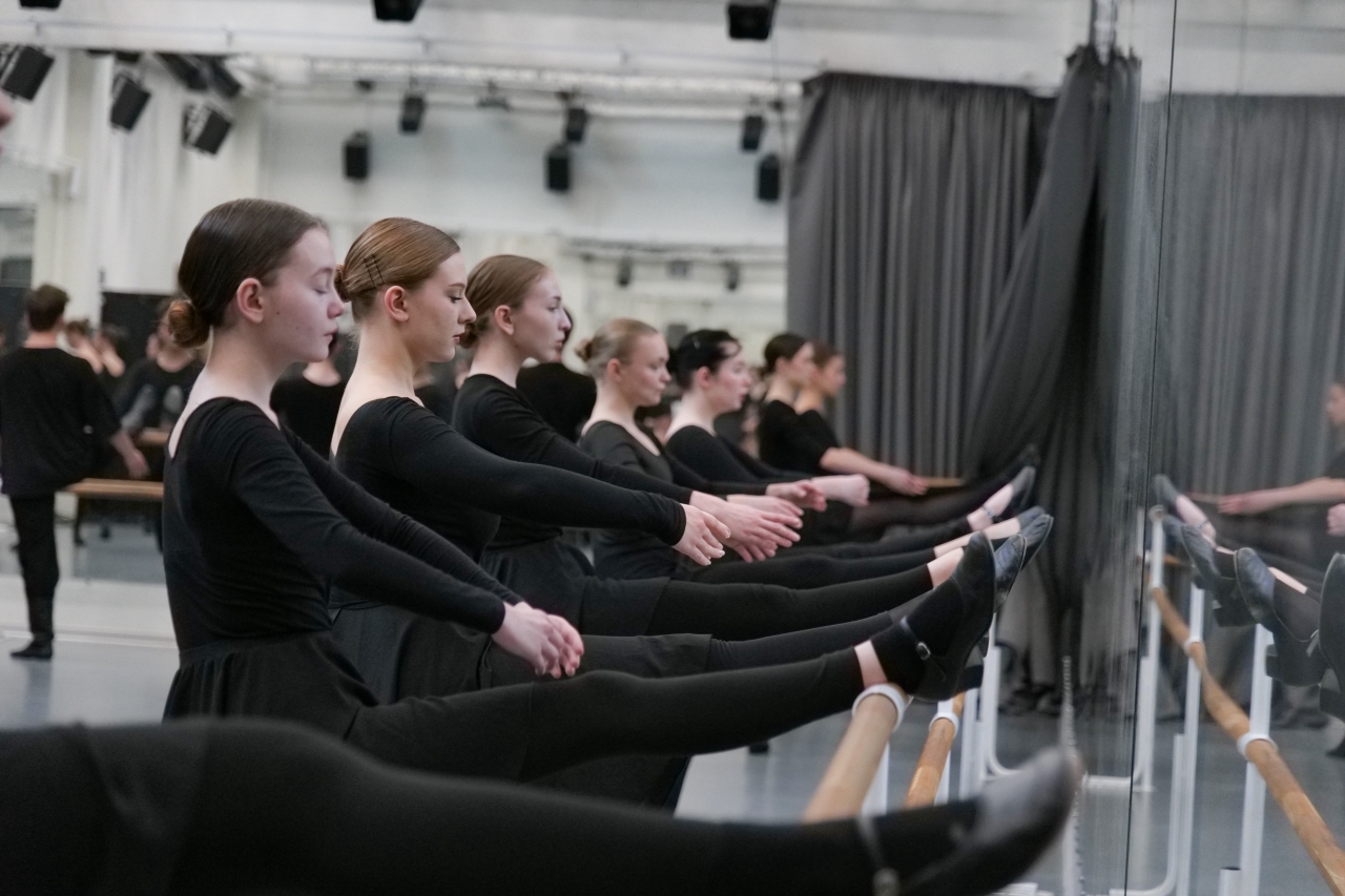 На экзамене по танцу (педагог Оксана Баранова) представили народно-сценический (русский народный) экзерсис у станка. Приседания, броски, веревочка, дроби, флик-фляк — все отработанные упражнения в будущем станут основой хореографических постановок студентов. Завершили танцевальными комбинациями на середине зала и учебным русским народным танцем «Многая лета».