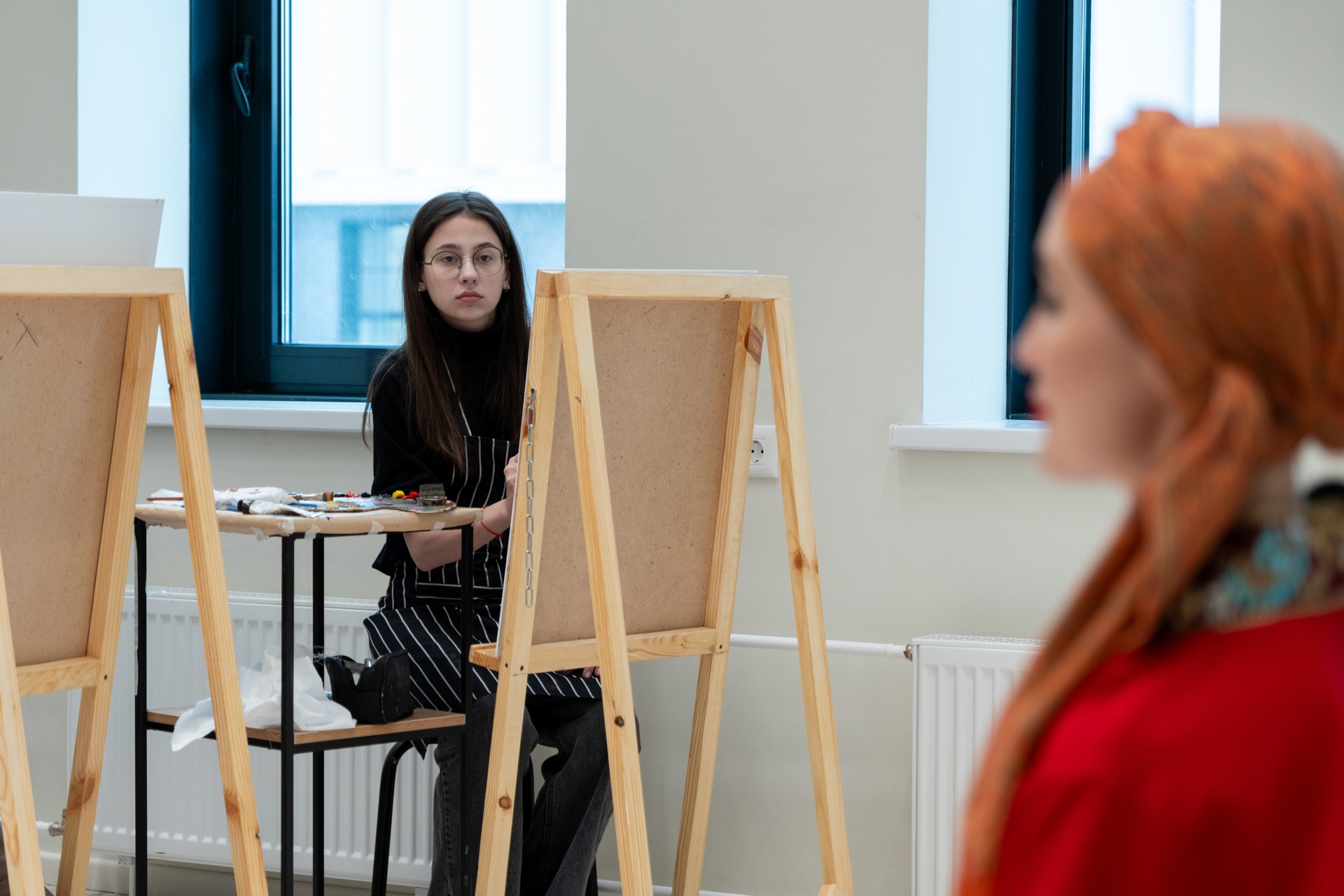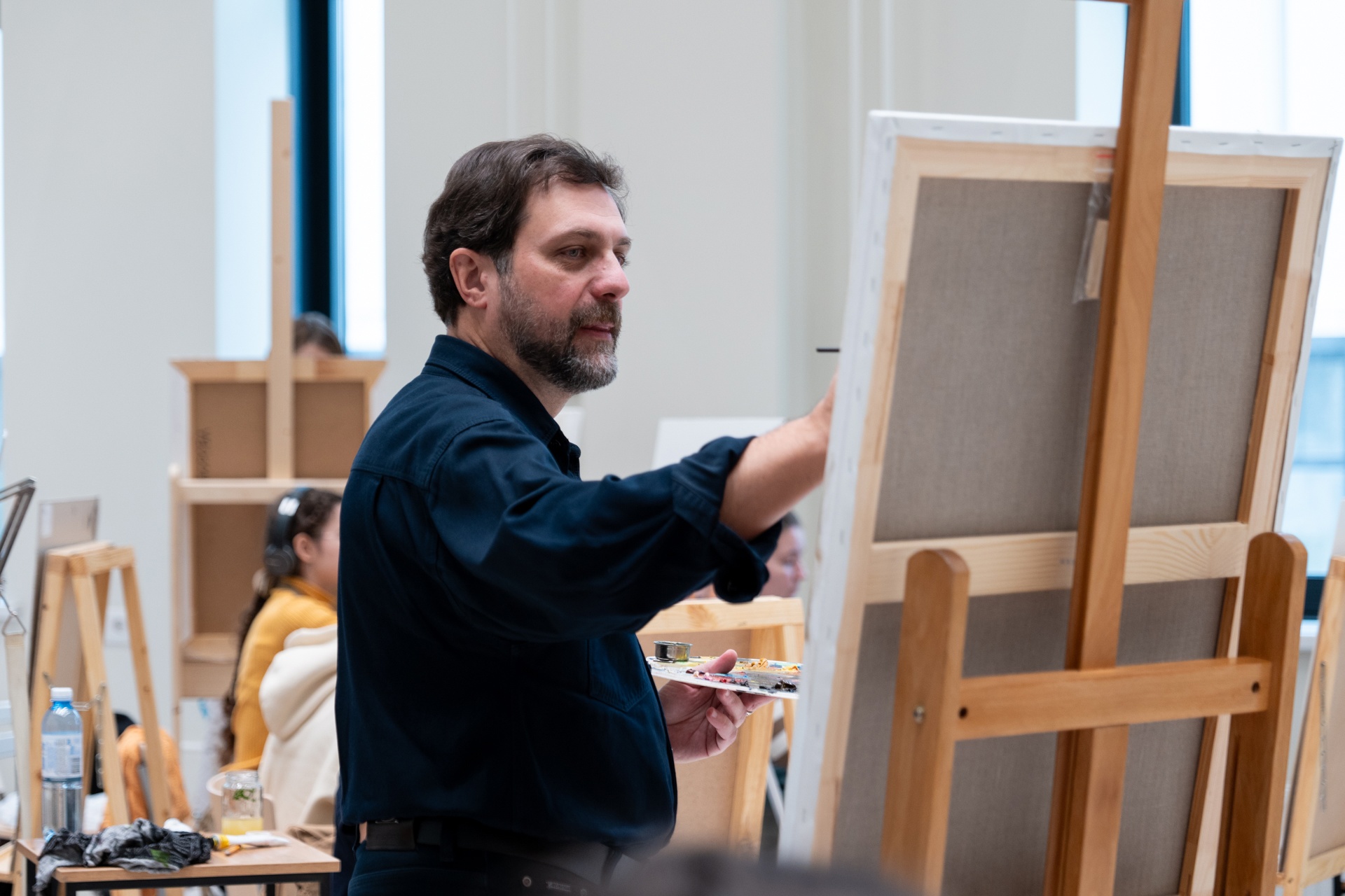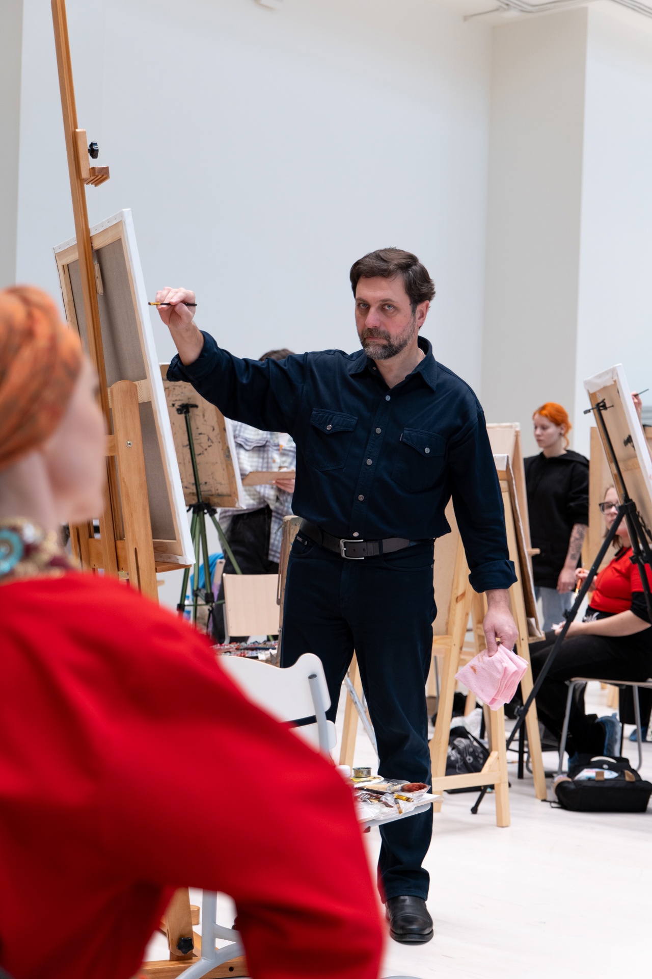 Мастерством со студентами филиала, а также обучающимися Кузбасского художественного колледжа поделился заслуженный художник РФ, академик РАХ Игорь Машков.