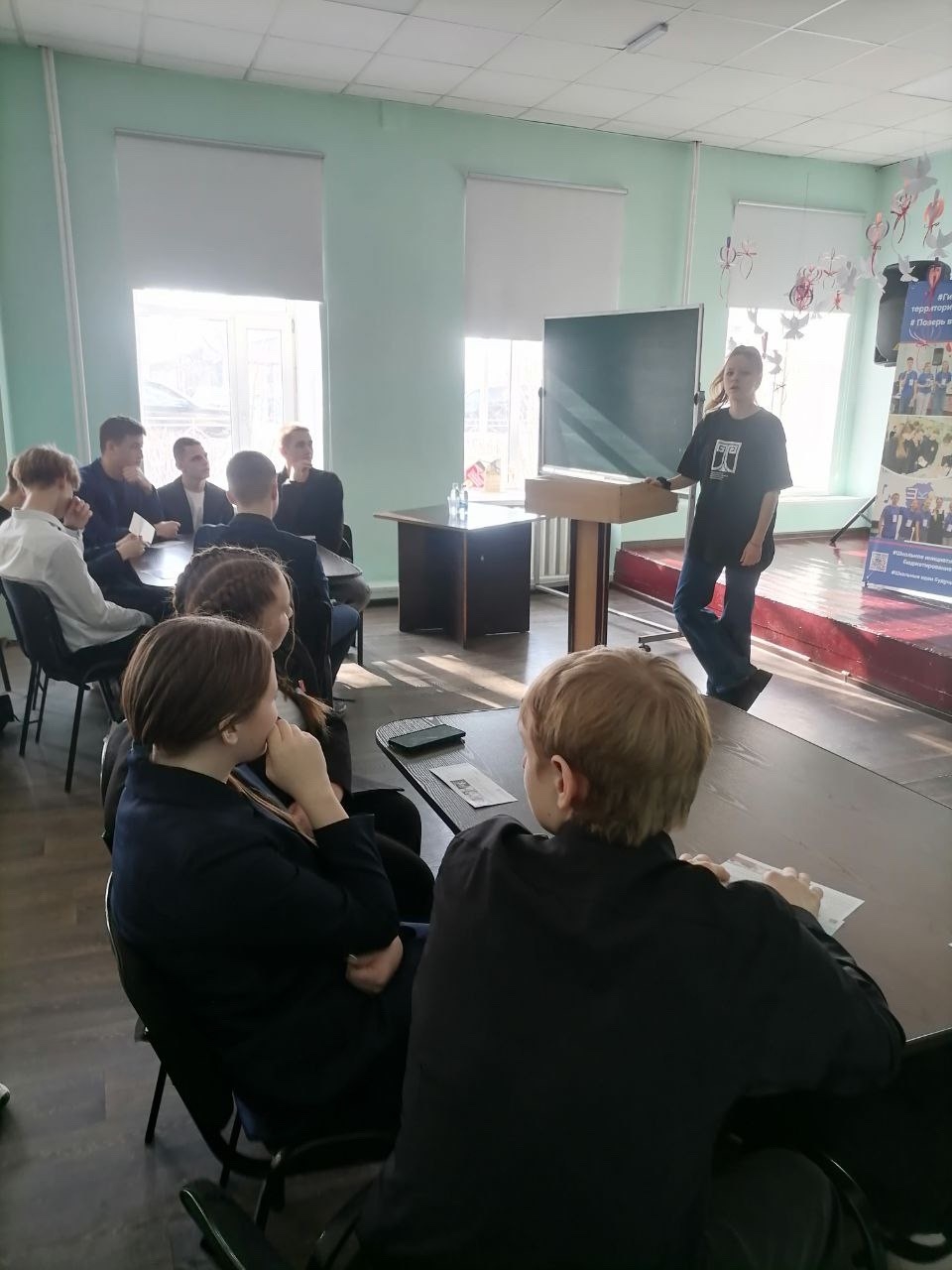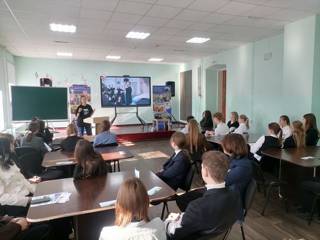 Студентка 4 актерско-режиссерского курса Мария Горбунова поделилась своим опытом поступления и учебы в театральном вузе, пообщалась с ребятами на тему «Профессия актер... Театр — это интересно» и провела тренинг по речи и актерскому мастерству.