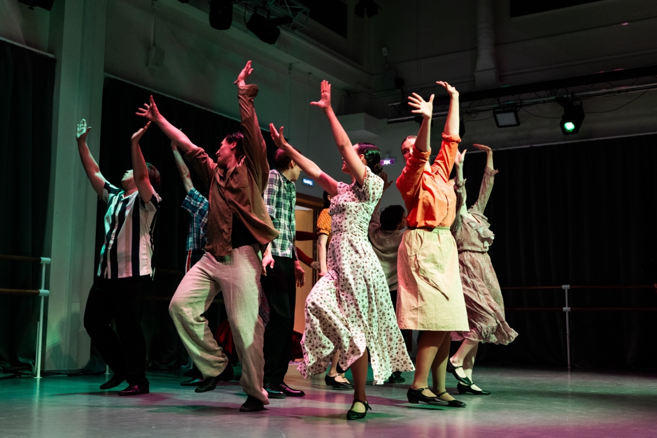 В тот же день — показ по танцу «Истории без слов», куда вошли работы, поставленные как преподавателем Оксаной Барановой, так и будущими режиссерами. Главное — наличие народных хореографических элементов.