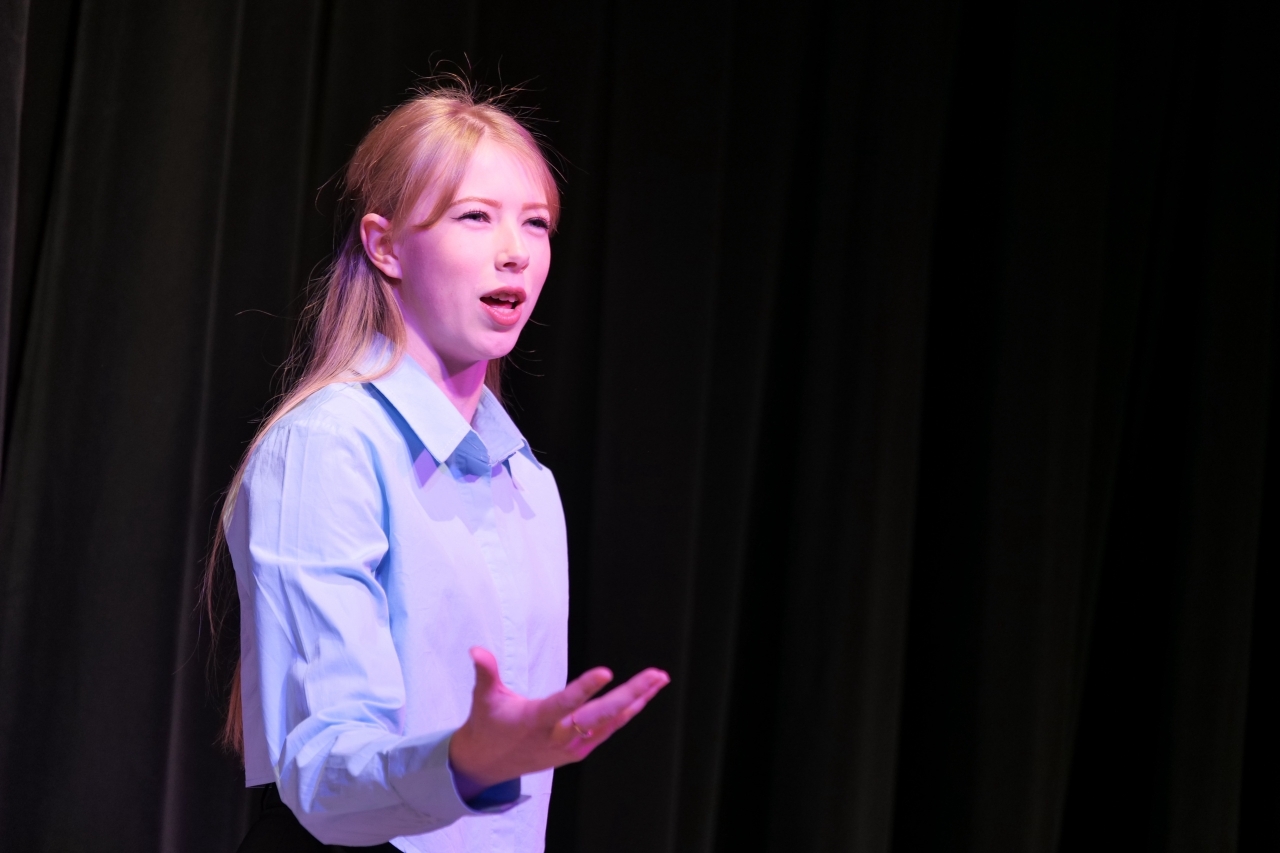 На показе по сценической речи (педагог Антон Абрамов) студенты представили самостоятельно прописанные монологи в жанре стендапа. Эта речевая форма достаточно сложная, ведь рассуждать необходимо о глубоко личных событиях или проблемах — при этом, с юмором, сценически грамотно и в художественной форме. Кроме того, зрители увидели две режиссерские работы: эскизы литературных спектаклей «Дон Жуан» (Михаил Джулань) и «Женщины Чехова» (Александра Загирняк).