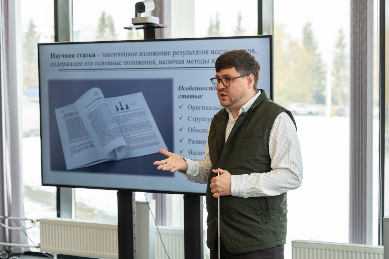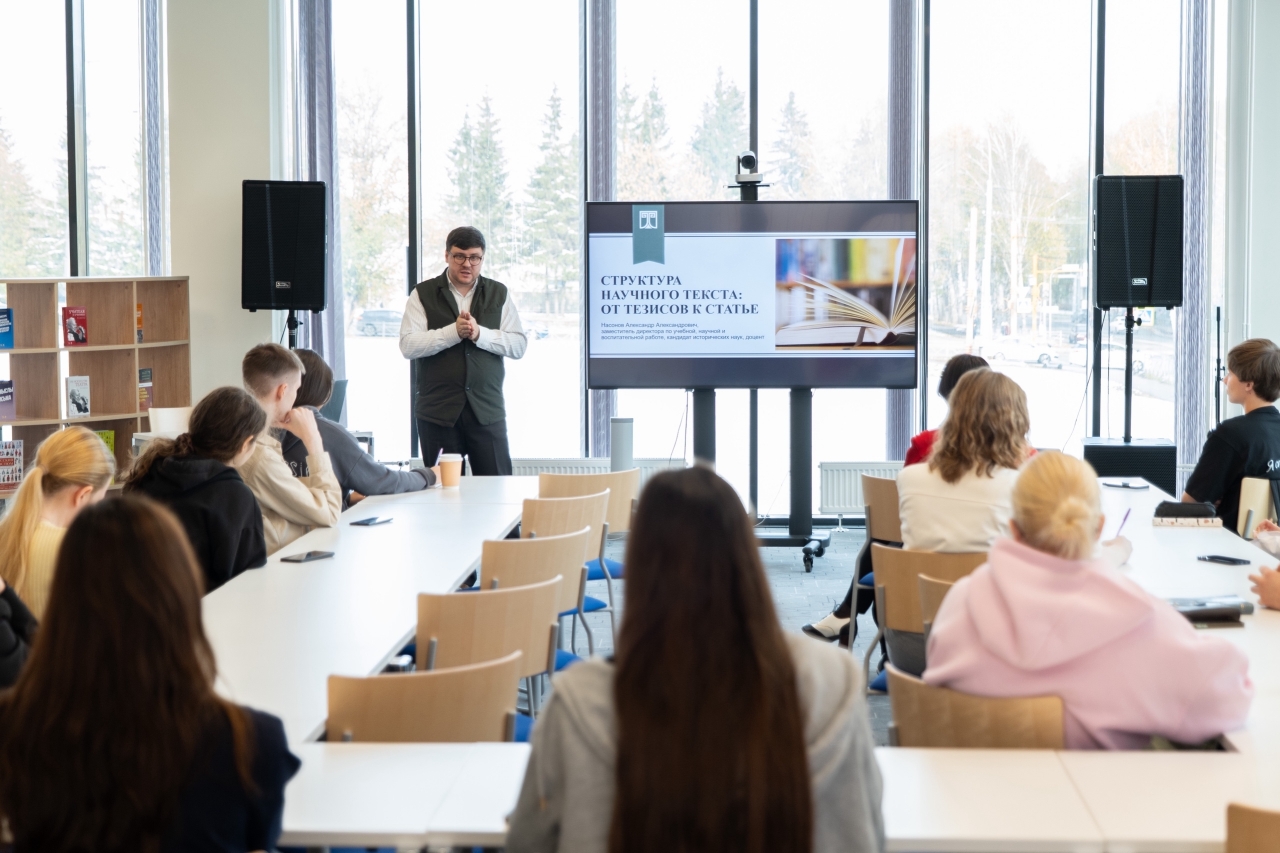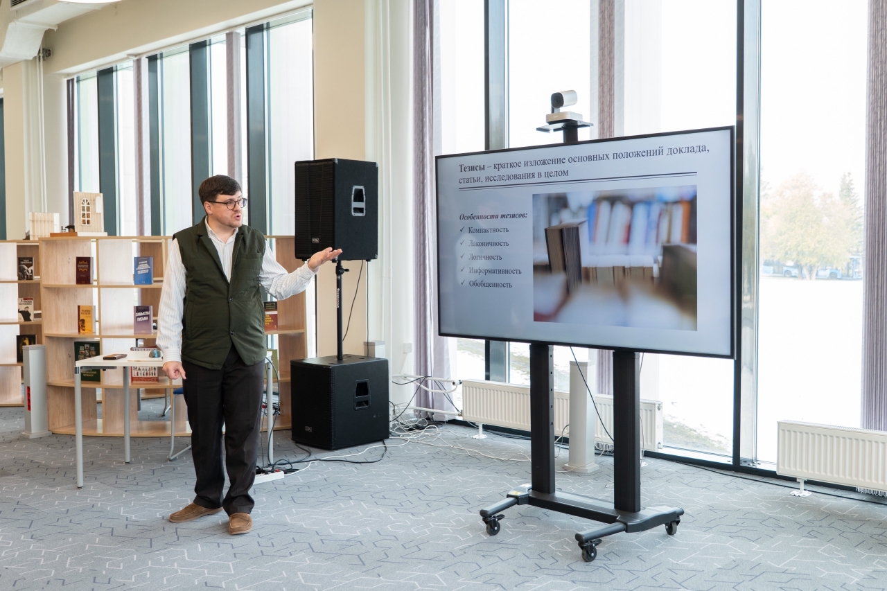 Тема встречи — «Структура научного текста: от тезисов к статье». Участники узнали, как грамотно писать и оформлять тезисы для конференции. На примере разобрали логику построения научной статьи, а также рассмотрели типичные ошибки начинающих исследователей и способы их избежать.