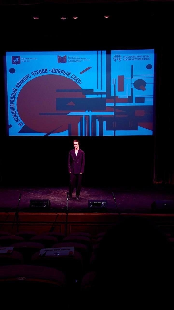 Студент второго курса Арсений Леонтьев (специализация «Артист драматического театра и кино», мастерская А. Нордштрема) стал лауреатом III степени Международного профессионального фестиваля-конкурса чтецов «Добрый сказ». Финальный тур проходил 25–29 октября на площадке Дома Москвы в Минске (Республика Беларусь).
