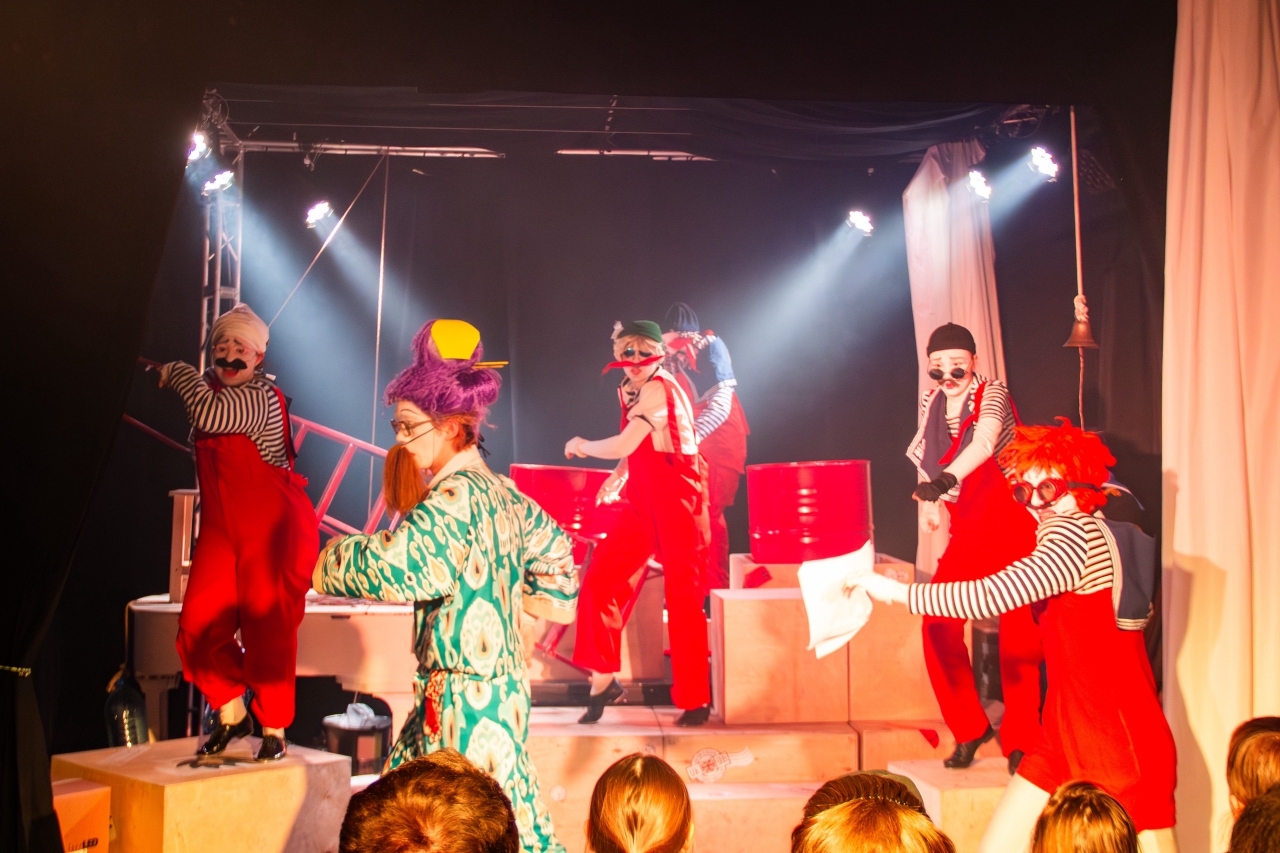 У 3 курса артистов и режиссеров эстрады мастерской Елены Садковой и Бориса Уварова прошел открытый показ «Клоунское ревю»