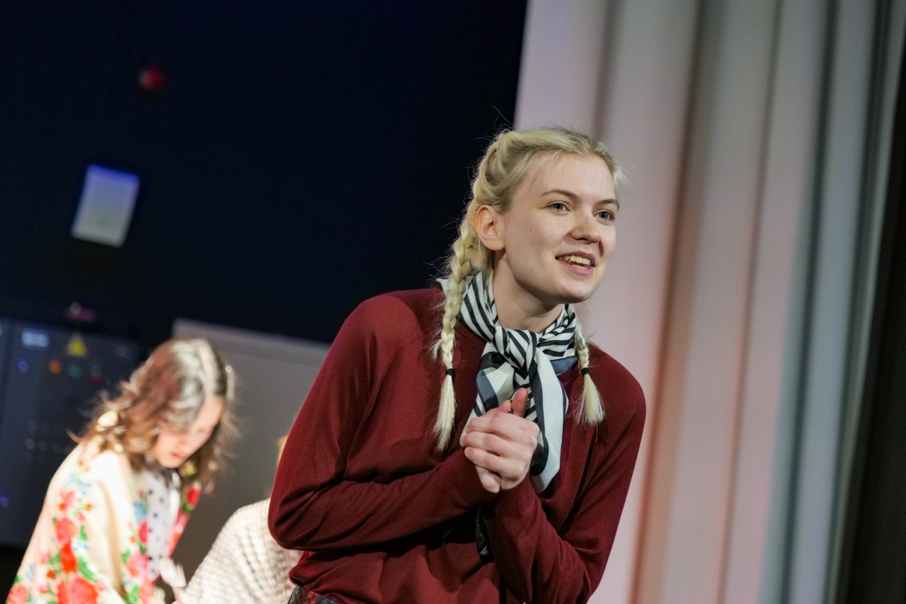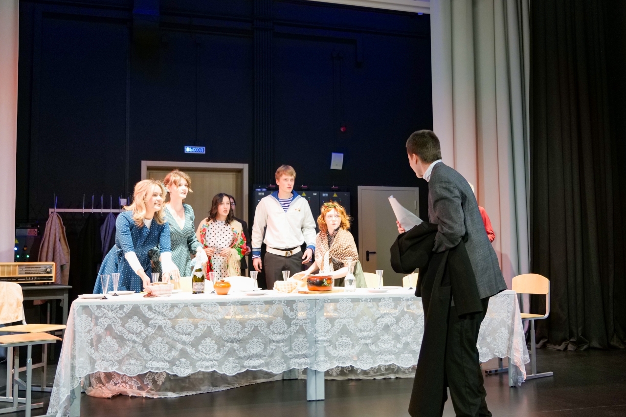 В первой части — сценическом показе «Время загадывать желания» — зрители увидели монологи персонажей пьесы Александра Володина «Фабричная девчонка». Грамотно поставленный рассказ от первого лица — мощный инструмент режиссера. Студенты продемонстрировали, как научились прописывать цепляющие монологи и интегрировать их в общее повествование, находить визуальные решения и выстраивать мизансцены, доносить текст живо и искренне и держать внимание зрителя.