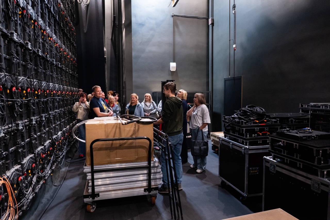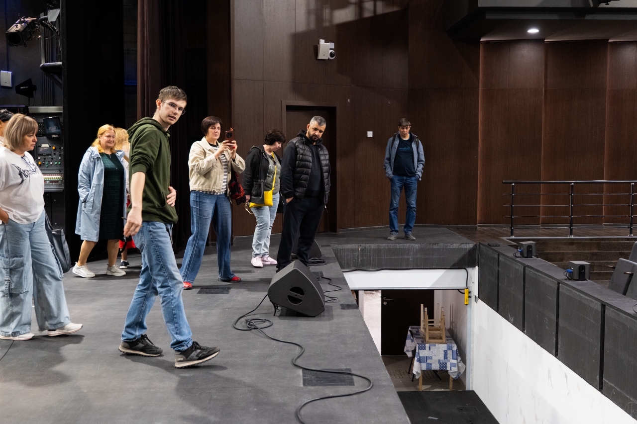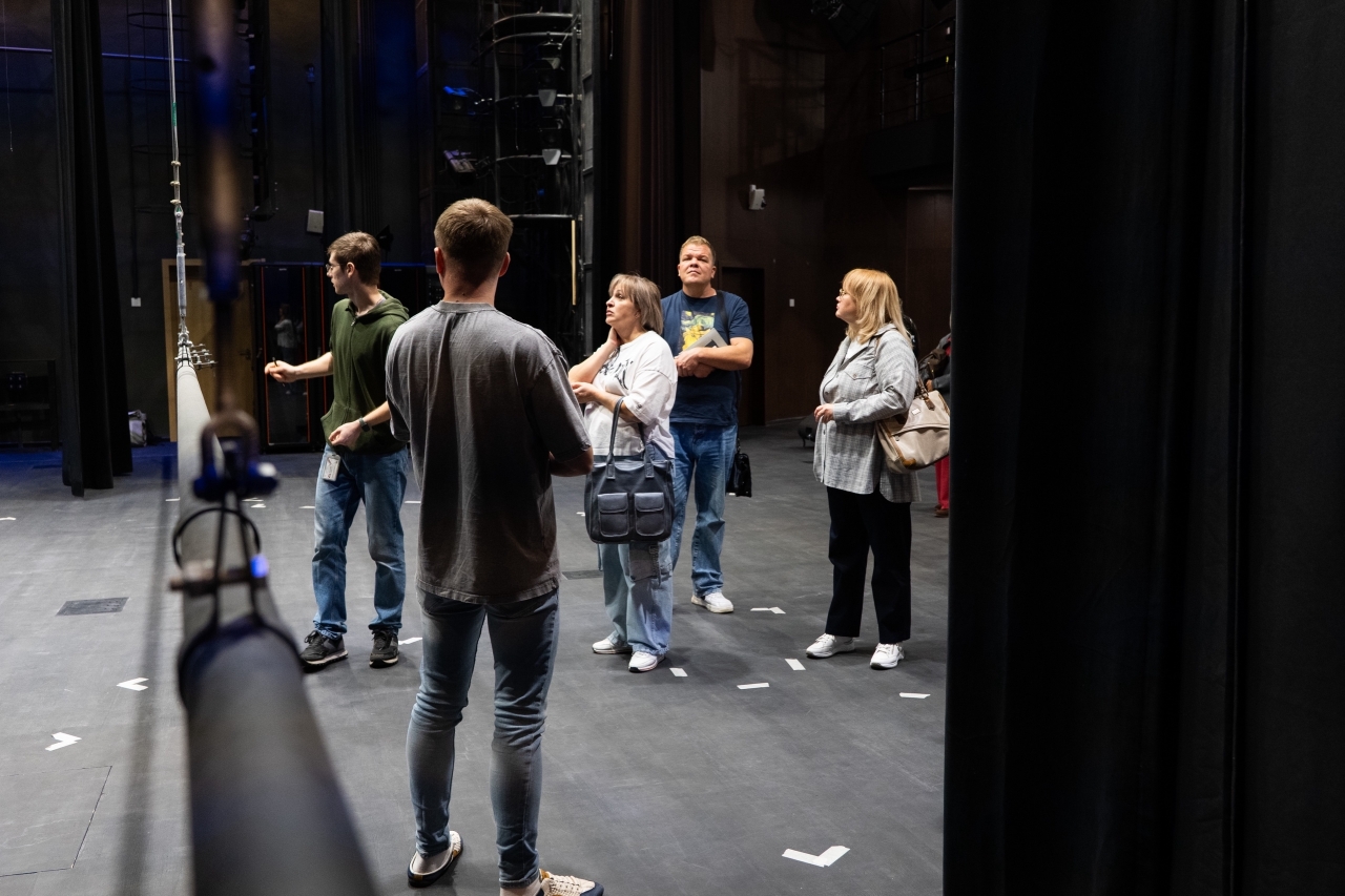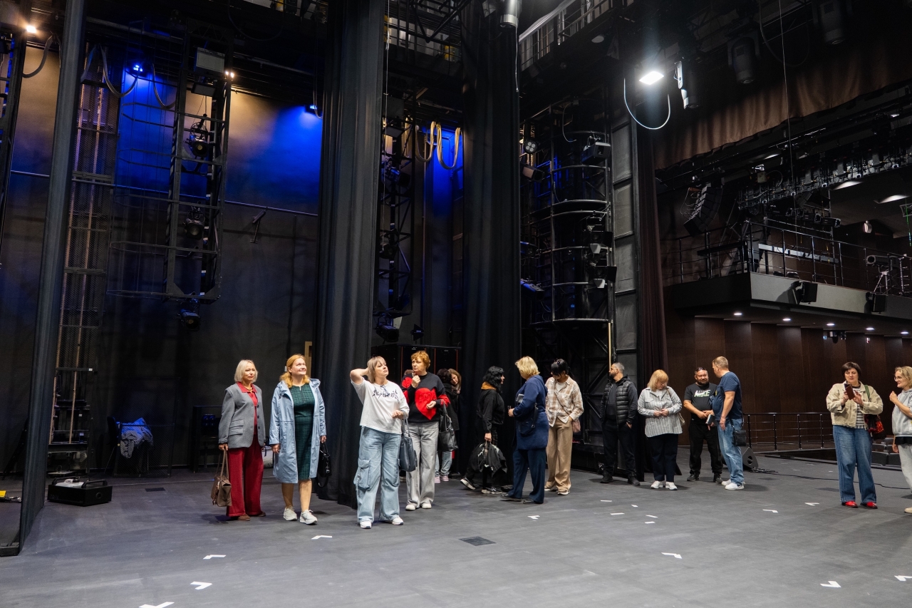 Особое впечатление на гостей произвел оснащенный по последнему слову техники учебный театр филиала. Коллеги познакомились с его устройством и оборудованием, узнали, как работают все службы и организованы производственые процессы подготовки спектаклей.