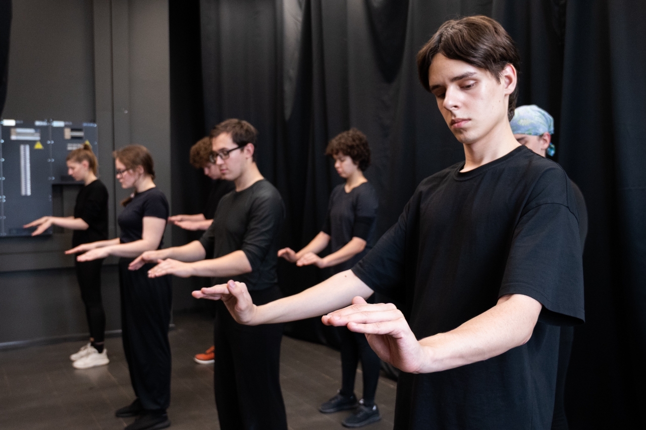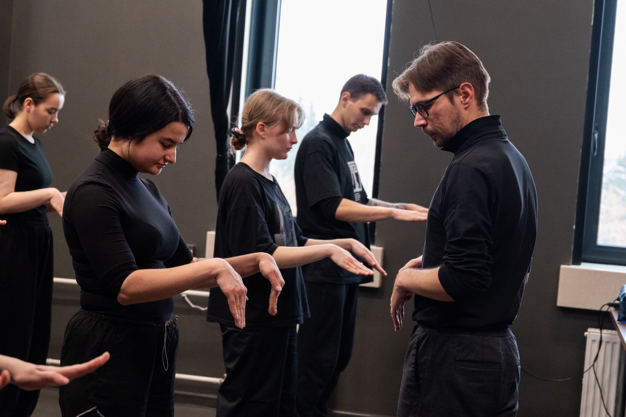 Открытые занятия в филиале РГИСИ в городе Кемерово продолжаются. Старший преподаватель кафедры театра, кино и телевидения Станислав Садыков провел со студентами 1 курса артистов и режиссеров театра кукол (мастер Дмитрий Петров/ Чакчи Фросноккерс) практикум по актерскому мастерству «Работа с пластикой рук».