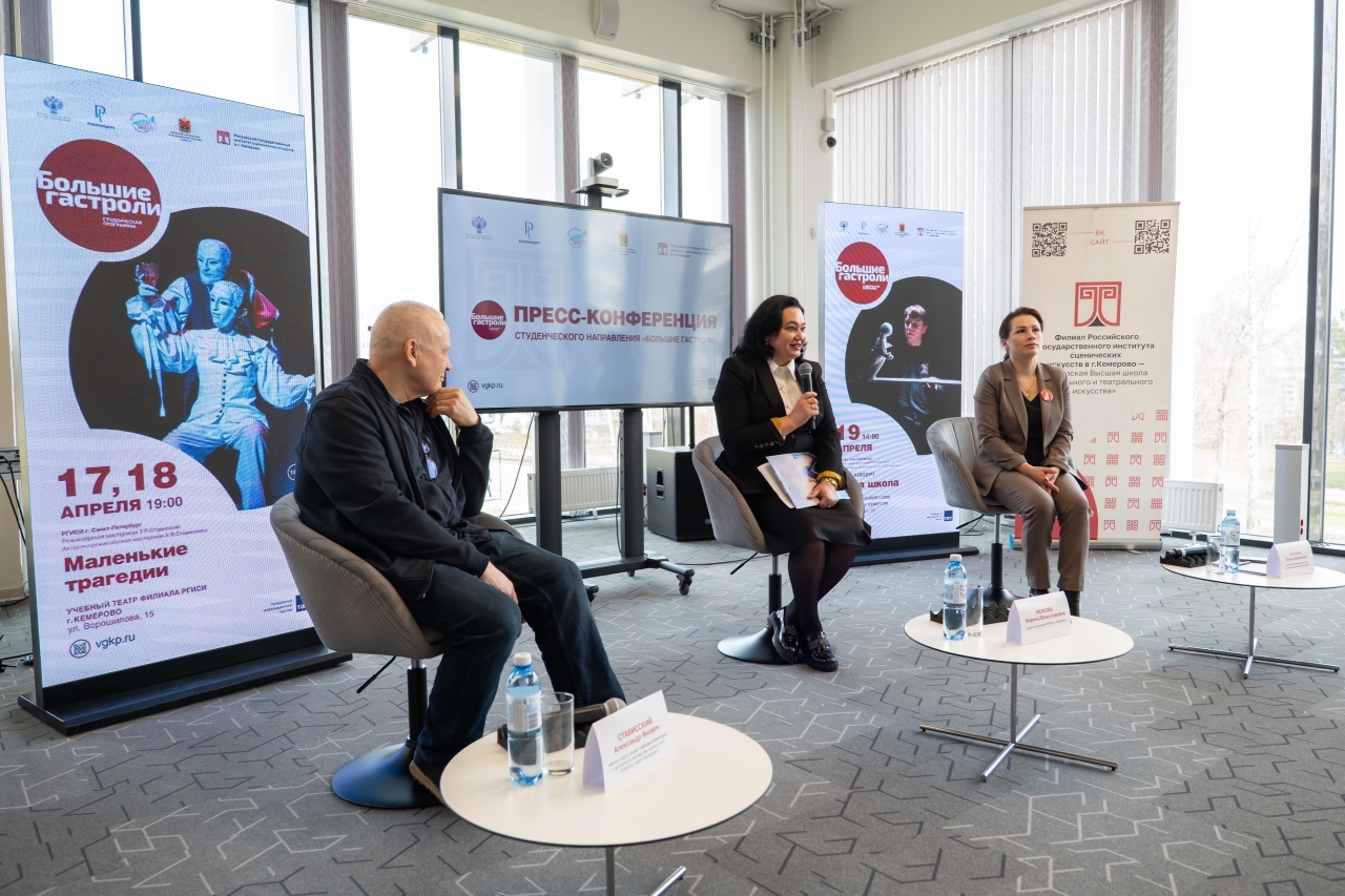 На сцене Театра РГИСИ в городе Кемерово будут показаны спектакль «Маленькие трагедии» и класс-концерт «Наша школа». Для представителей медиа студенты режиссерской мастерской Т. Р. Стависской и актерско-режиссерской мастерской А. Я. Стависского факультета театра кукол РГИСИ (г. Санкт-Петербург) на открытой репетиции представили эпизоды из предстоящей постановки по циклам пьес А. С. Пушкина «Моцарт и Сальери», «Каменный гость» и «Пир во время чумы».