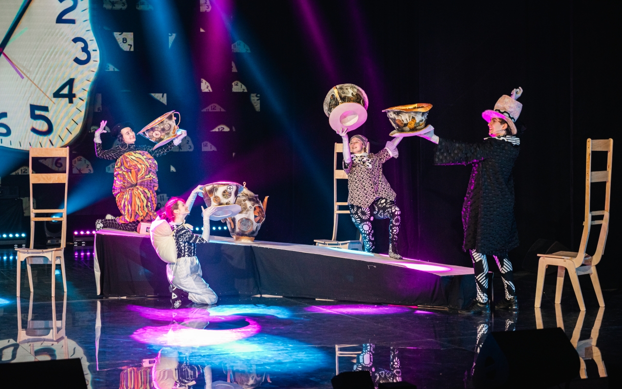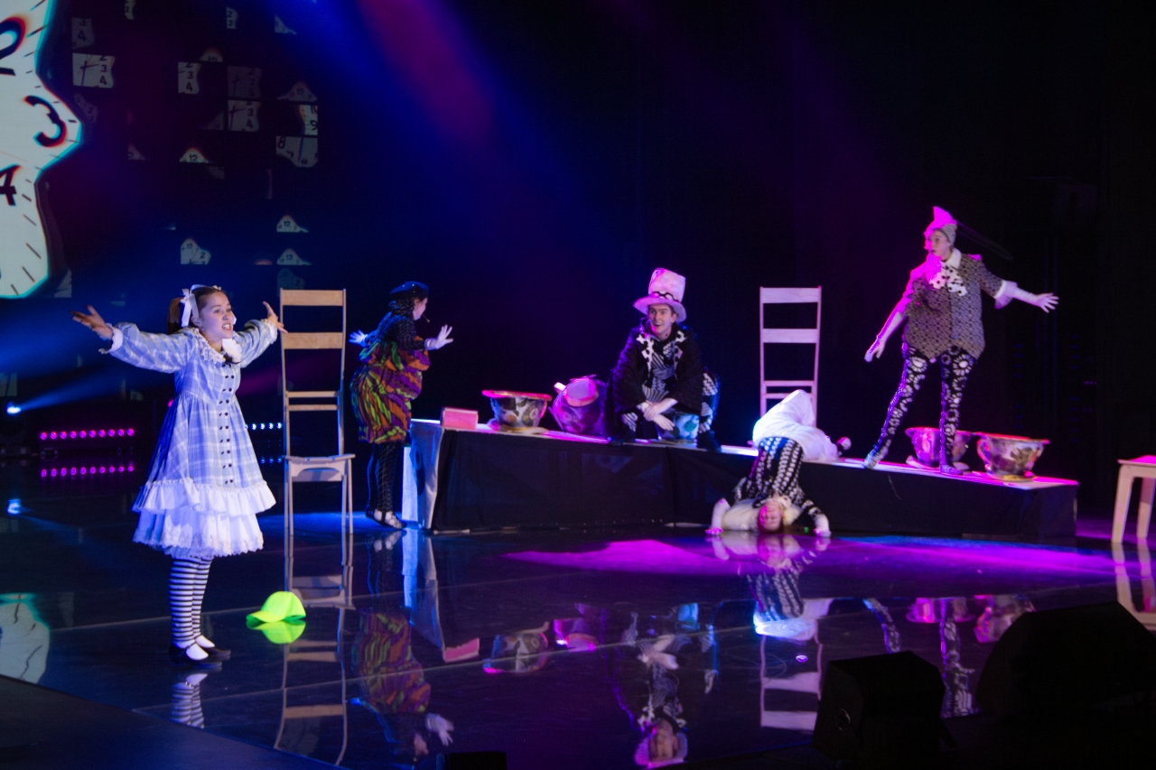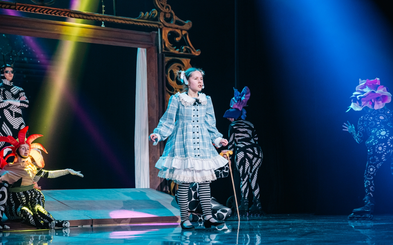 Феерическое путешествие в мир воображения и бесконечных превращений, благодаря которым Алиса взрослеет, понимает цену времени, учится вежливости, а также осознает, что такое — «жить в соответствии с собой» и как найти гармонию между миром взрослых и «тем самым — быть собой». Спектакль наполнен красочными образами, созданными благодаря сочетанию различных выразительных средств, в том числе костюмов-трансформеров, театра теней, анимацией, музыкальными спецэффектами, а так же — актерскими перевоплощениями и волшебным новогодним настроением.